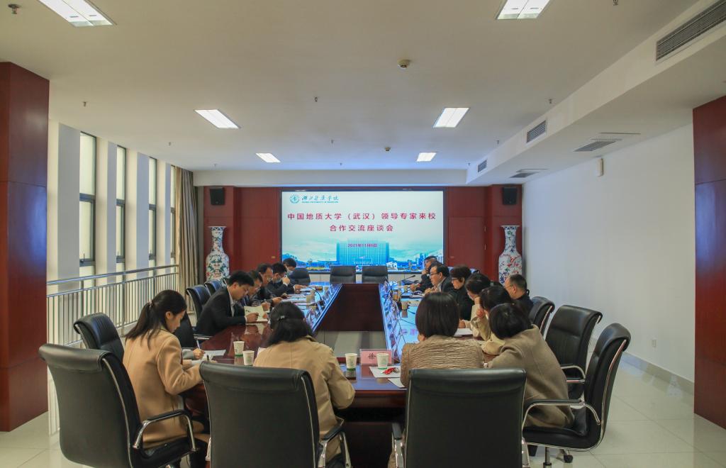 本网讯(文/付轶 图/学通社记者 李必清)11月6日上午,中国地质大学(武汉)实验室与设备管理处处长马腾、党委学生工作部部长邬海峰、环境学院副院长柴波、工程学院徐光黎教授等一行5人来校商谈省部共建国家重点实验室合作事宜。校党委副书记、副校长王云甫,科技处、基础医学院、生物医药研究院等相关部门负责人及部分博士代表参与座谈。