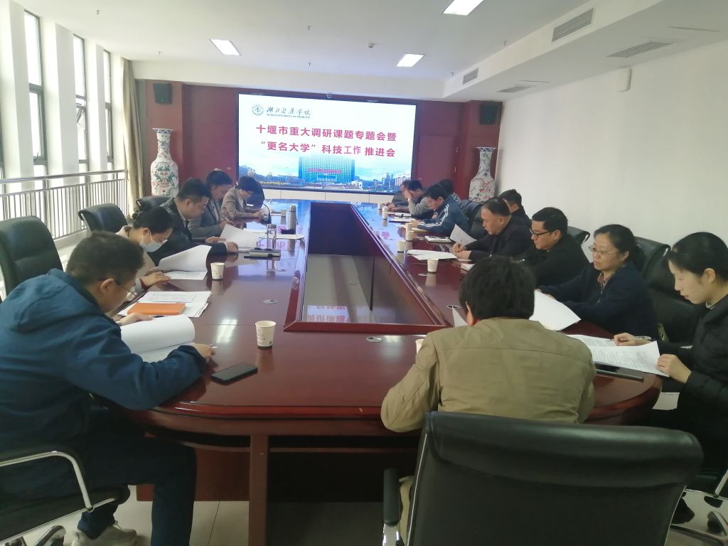 本网讯(通讯员 马俊凯 邬闻文 赵永全)3月6日下午,十堰市重大调研课题专题会议暨“更名大学”科技工作推进会在科教楼1708会议室举行。校党委常委、统战部长谭艳出席会议。会议由科技处处长郭阳主持。