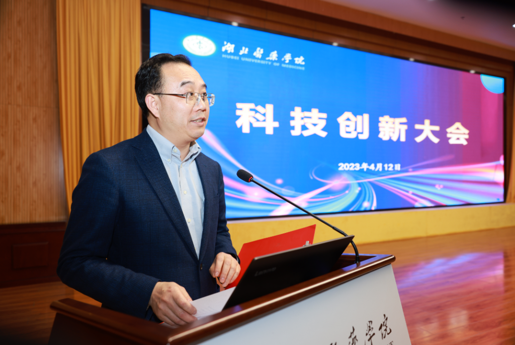 本网讯(通讯员 文/马俊凯 赵永全 图/鲍晓宇)4月12日下午,湖北医药学院2023年科技创新大会在科教楼一楼学术报告厅举行。全体校领导出席会议,附属医院领导、机关全体管理干部、全校教师、研究生导师、先进单位和个人代表、各二级学院及附属医院领导及科研管理人员、研究生等500余人参会。